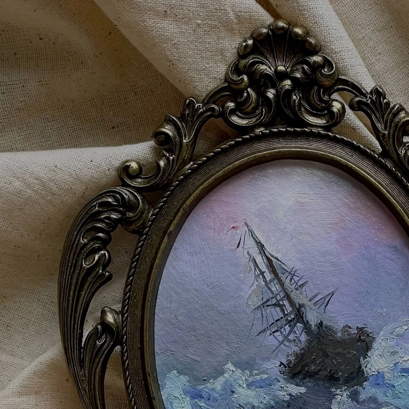 I also collect Italian brass frames which I will occasionally frame small oil paintings in. All paintings housed in the brass frames are stamped “made in Italy” and are reminiscent of the baroque style.